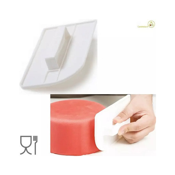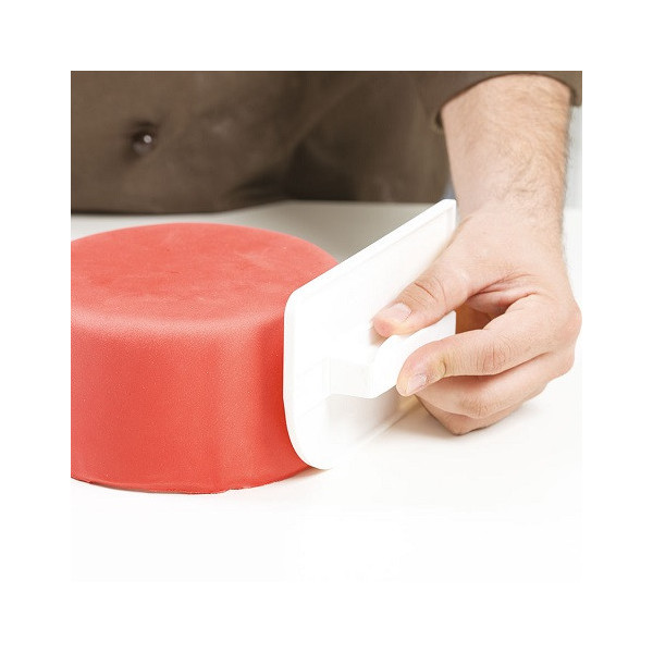 La spatola spianatrice livella e definisce i bordi delle torte sia tonde che quadrate rendendoli uniformi e perfettamente definiti grazie alla forma dei suoi angoli.