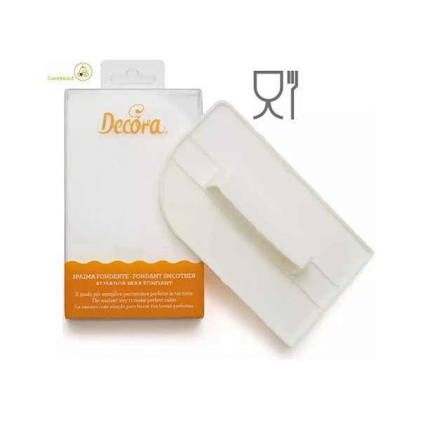 Spianatrice Fondente a 3 angoli, in plastica antiurto, con impugnatura ergonomica saldata ad ultrasuoni senza l'uso di collanti, da Decora. Spatola ideale per la levigazione di torte.