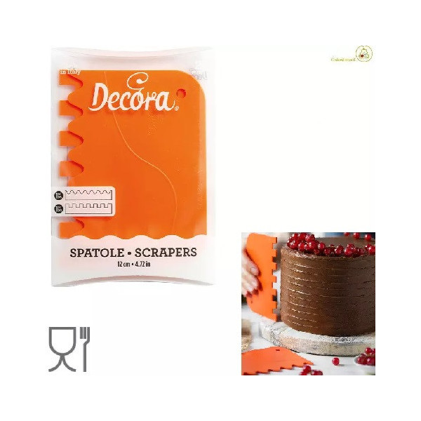 Set 3 pettini decoratorta in plastica 23 cm Wilton: set 3 spatole decoro in plastica ed impugnatura ergonomica ideale per decorare torte alte con 6 differenti texture: denti, riccioli e onde.