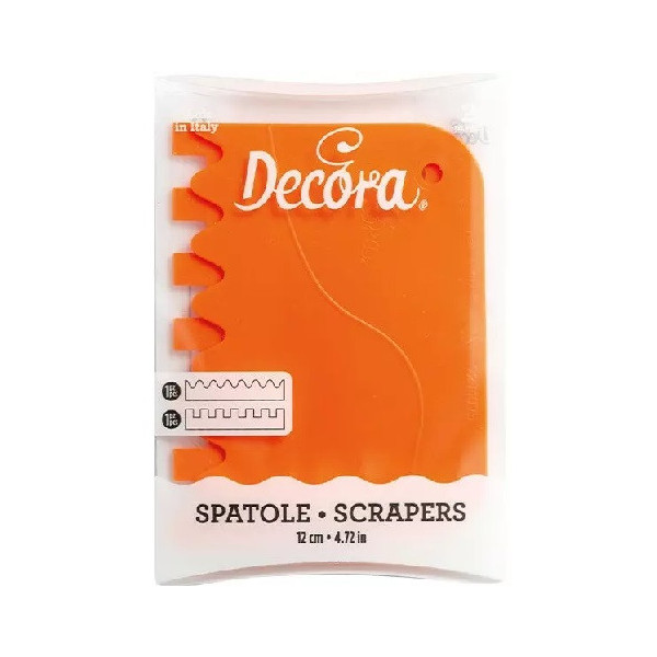 Set 2 tarocchi ondulati a pettine, spatole o raschia multiuso ondulate in plastica arancio da 12 cm x 8,3 cm e da 13,5 cm x 9,2 cm. Indispensabili nella lavorazione di creme, panna e cioccolato