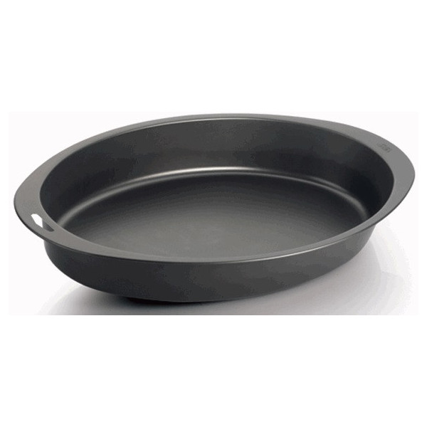 Teglia Ovale Teflonata: teglia da forno, a forma ovale, lunga 40,5 cm, larga 25 cm, alta 6 cm in alluminio antiaderente, da Vespa dolci forme.