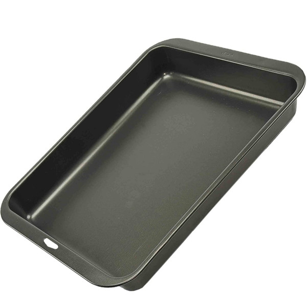Teglia rettangolare alta in alluminio antiaderente, larga 37 cm, lunga 26 cm e alta 6 cm o larga 44 cm, lunga 30 cm e alta 5 cm, ideale per rustici o preparazioni salate.