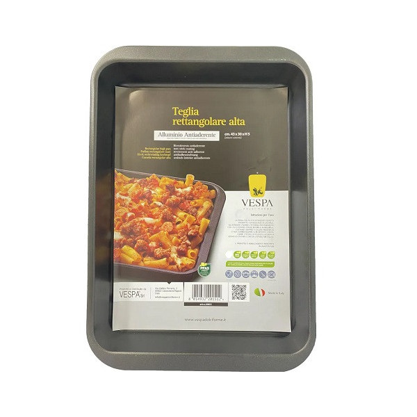 Teglia rettangolare Vespa in alluminio antiaderente alta 6 cm larghe 37 cm o 44 cm Teglia rettangolare Vespa in alluminio antiaderente alta 5 cm dimensioni 43x30 cm Teglia rettangolare alta antiaderente cm 37 x 26 x 6 h