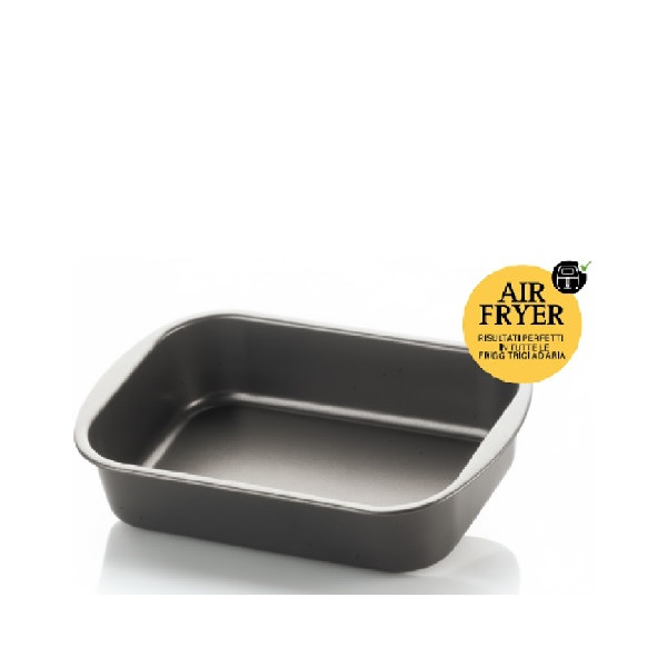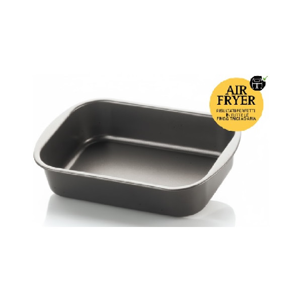 Teglia mini sforna-tutto o universale in alluminio antiaderente larga 23 cm, lunga 15,5 cm ed alta h 5 cm, da Vespa Dolci Forme, adatta per friggitrice ad aria rettangolare.