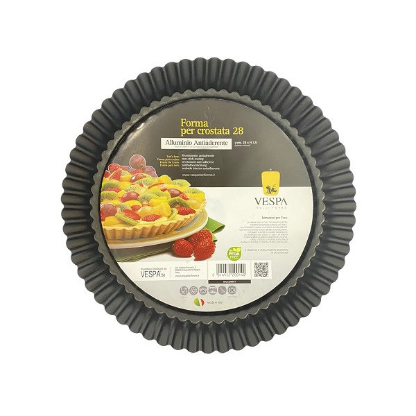 Forma crostata tonda fondo rialzato Vespa alluminio antiaderente di ø28 cm o ø32 cm Forma crostata tonda fondo rialzato Vespa alluminio antiaderente diametro 28 cm Forma crostata tonda fondo rialzato diametro 28 cm altezza 3,5 cm in alluminio antiaderente da Vespa 5 cm