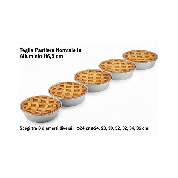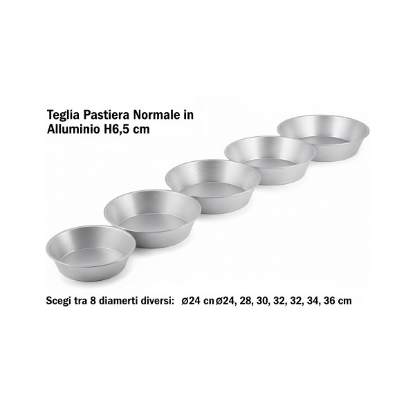 Teglia per pastiera normale ruoto per pastiera altezza 6,5 cm, in alluminio al 99,9% per alimenti di misure: dal diametro 22 cm al diametro 36 cm.