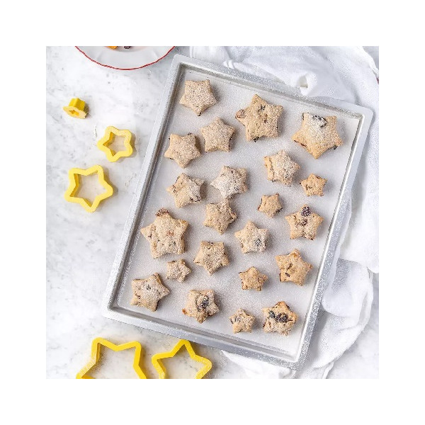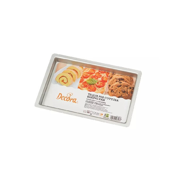 Teglia rettangolare bassa per biscotti e pizza da 17,8 a 30 cm Decora: teglia in alluminio anodizzato ad alta anti-aderenza, con guide laterali, ideale per biscotti, pan di spagna, dolci bassi e pizza.
