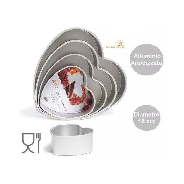 Stampo Cuore in alluminio anodizzato da diametro 15 cm a 35 cm di Decora teglia professionale di alta qualità Teglie cuore con bordi dritti Decora: stampo in alluminio anodizzato a forma cuore da 15 a 35 cm Stampo cuore in alluminio anodizzato teglia professionale 15 cm da Decora Stampo cuore in alluminio anodizzato teglia professionale 15 cm da Decora Stampo Cuore in alluminio anodizzato da diametro 15 cm a 35 cm di Decora teglia professionale di alta qualità
