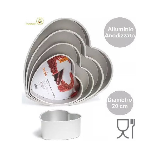 Stampo Cuore in alluminio anodizzato da diametro 15 cm a 35 cm di Decora teglia professionale di alta qualità Teglie cuore con bordi dritti Decora: stampo in alluminio anodizzato a forma cuore da 15 a 35 cm Stampo cuore in alluminio anodizzato teglia professionale 20 cm da Decora Stampo cuore in alluminio anodizzato teglia professionale 20 cm da Decora Stampo Cuore in alluminio anodizzato da diametro 15 cm a 35 cm di Decora teglia professionale di alta qualità