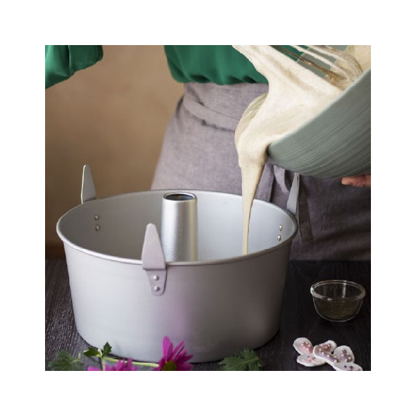 Chiffon Cake con piedini da diametro 20 a 26 cm. Ruoto stampo forma Chiffon Cake con piedini o stampo americano in alluminio al 99,5 %.