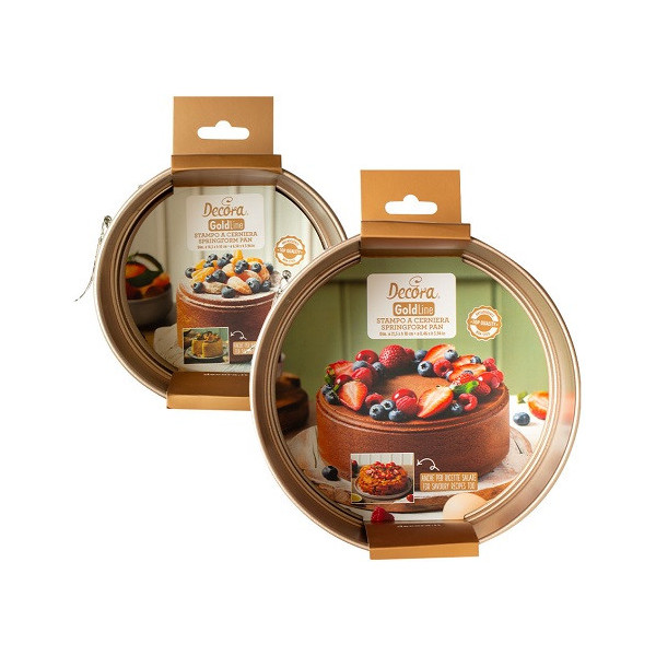 Stampo a cerniera rose gold line di diametro 16,5 o ø21,5 cm, da Decora. Tortiera tonda in metallo antiaderente, di alta qualità, con cerniera apribile e fondo mobile.