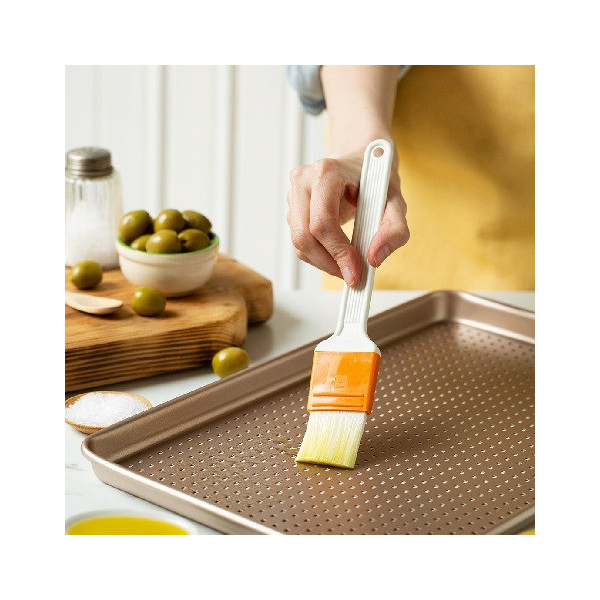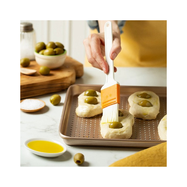 Pennello da 4 o 6 cm Decora; manico in plastica e setole in poliestere fini e morbide, per alimenti, ideale per ungere la pasta, infarinare e oliare gli stampi. Resistente fino a 230° C.