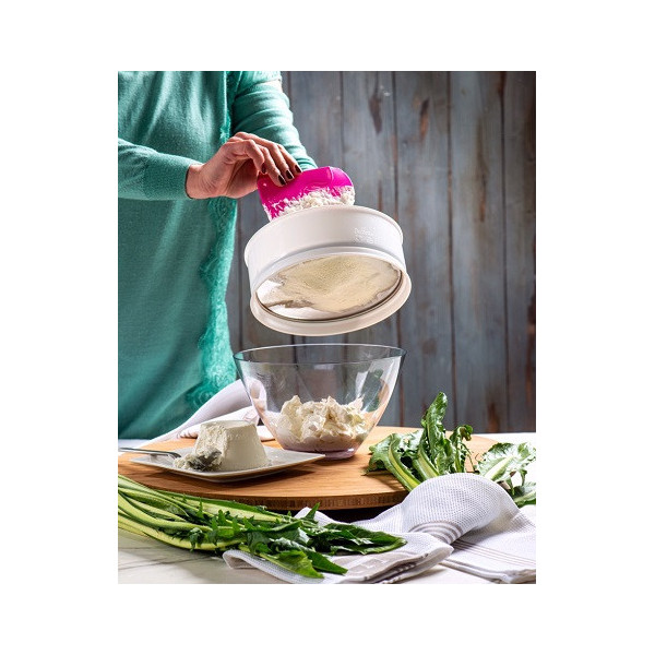 Setaccio per farina zucchero, ricotta e granelle è: versatile, facile da maneggiare e pulire.