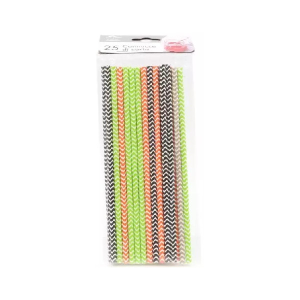 Cannucce in carta monouso e biodegradabile in varie fantasie e colori assortiti: confezione da 25 cannucce di dimensioni 20ר0,6 cm. Ideale per colorare la presentazione delle tue bevande.