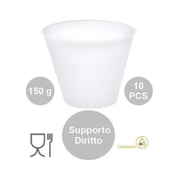 - 150 g, set 10 basi dritte di diametro superiore 80 mm, diametro inferiore 47 mm, altezza 61 mm,