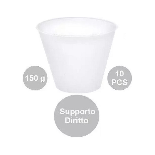 - 150 g, set 10 basi dritte di diametro superiore 80 mm, diametro inferiore 47 mm, altezza 61 mm,