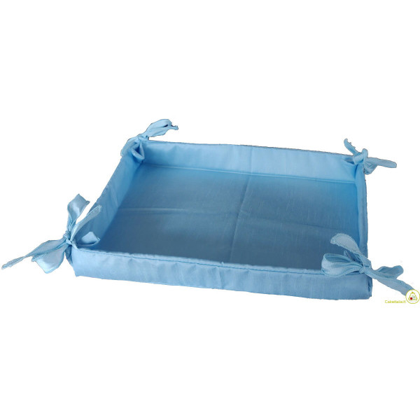 Vassoio o cesto in tessuto per confezioni regalo e porta bomboniere, in colore celeste di dimensioni 36 cm x 27 cm x h 6 cm.