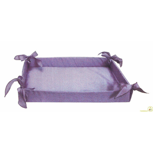 Vassoio o cesto in tessuto per confezioni regalo e porta bomboniere, in colore lilla di dimensioni 36 cm x 27 cm x h 6 cm.