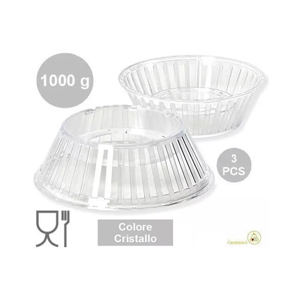 da 1 Kg in confezione da 3, diametro maggiore 175 mm, diametro minore 118 mm, altezza 55 mm