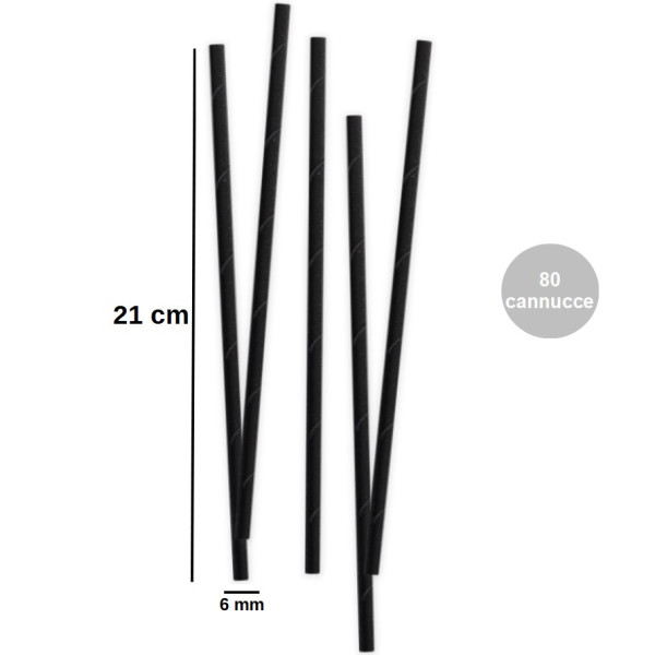 80 Cannucce da 21 cm in carta biodegradabile di colore nero, ideali addobbare e personalizzare sweet table, feste, party ed eventi a tema, certificate FSC, di Decora.