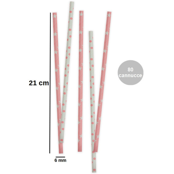 80 Cannucce da 21 cm in carta biodegradabile con stelle e pois rosa, ideali addobbare e personalizzare sweet table, feste, party ed eventi a tema, certificate FSC, di Decora.
