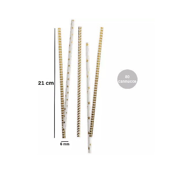 Set da 80 cannucce lunghe 21 cm in carta biodegradabile ed inchiostro ad acqua con decori stelle e strisce oro, ideali per addobbare e personalizzare sweet table, feste, party ed eventi a tema, certificate FSC, di Decora.