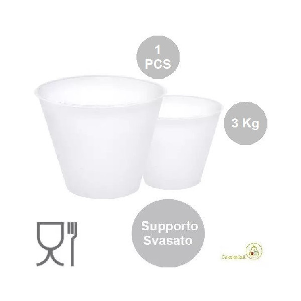 Supporti svasati da 100 g fino a 3 Kg: supporti con bordo superiore leggermente svasato, in plastica semitrasparente, adatta al contatto con alimenti, o basi per uova di pasqua a fazzoletto