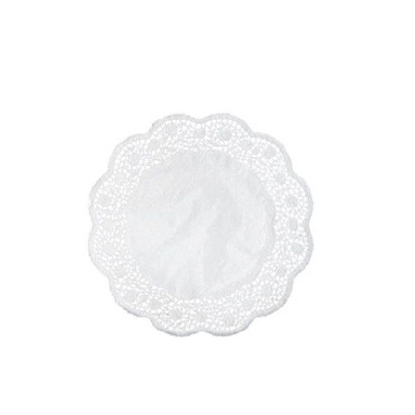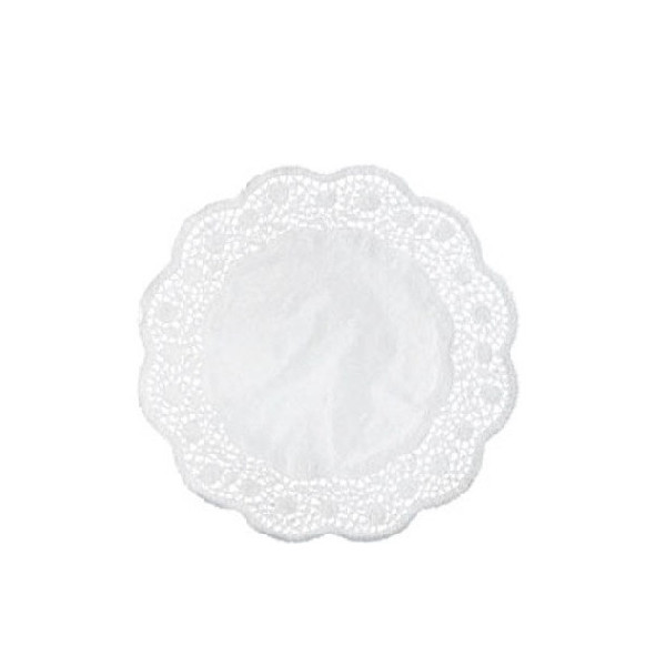 Pizzi tondi di diametro 16,5 cm, in confezione da 24 centrini, di carta bianca in pizzo porcellanata paraffinata da 70/80 gr/mq.