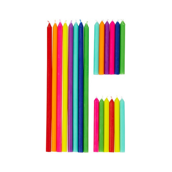 Colori candeline lunghe: rosso, blu, verde, color carta zucchero, rosa, arancio, giallo, viola