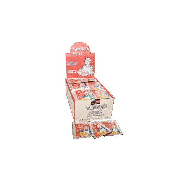Bicarbonato di Ammonio o ammoniaca alimentare in bustina da 20 grammi, perfetta per la preparazione di dolci.