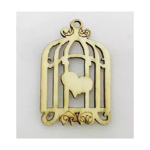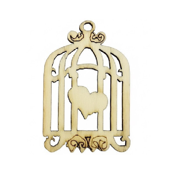 Decorazione in legno di balsa incisa e tagliata al laser rappresentante una gabbietta col cuore