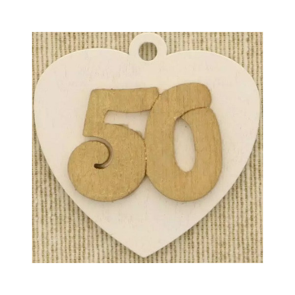 Applicazione in Legno Cuore 50° Oro di dimensioni 4,2x4xh0,4 cm