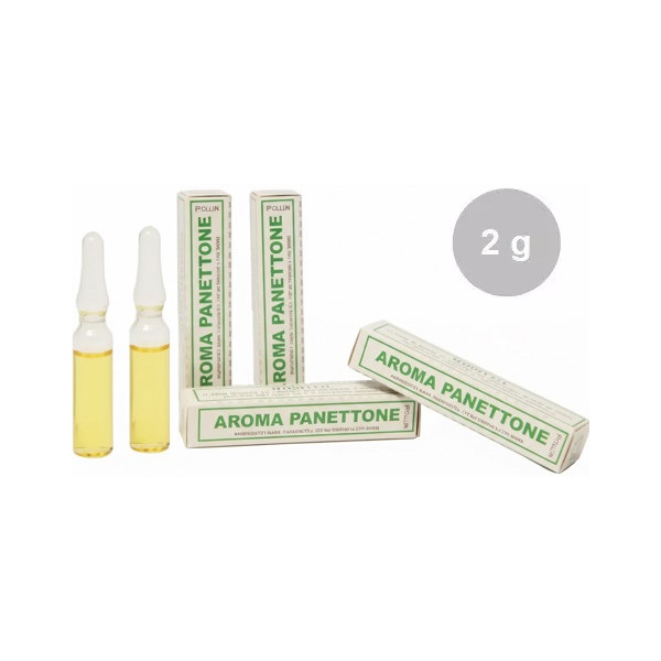 Aroma panettone liquido da Madma in fiala da 2 g, in pasticceria ideale per aromatizzare impasti e creme per dolci, in particolare il classico panettone natalizio.