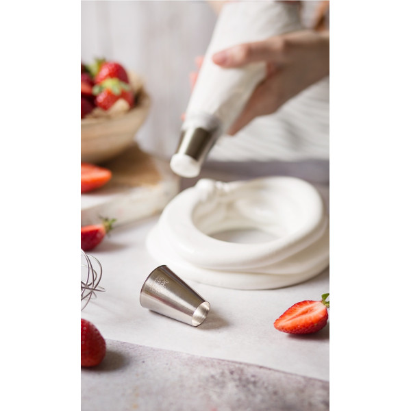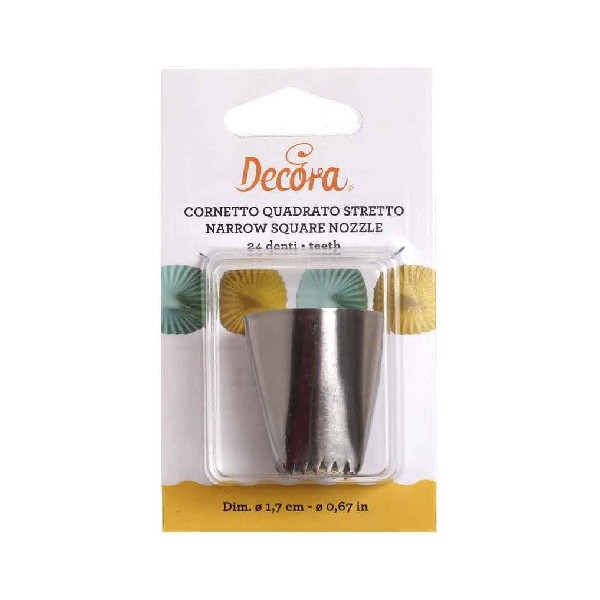 Cornetto Meringa in acciaio inox Decora 24 o 32 Denti: beccuccio o bocchetta Meringa da decorazione, con foro di uscita quadrato, senza punti di saldatura, lavabile in lavastoviglie e riutilizzabile da Decora.