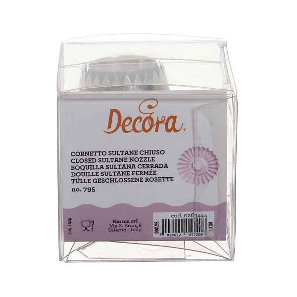 Cornetto speciale grande in acciaio inox per Sultane Aperto o Sultane Chiuso Decora: bocchetta, senza punti di saldatura, ideale per realizzare biscotti romias, beccuccio speciale n. 795 o 796 Decora.