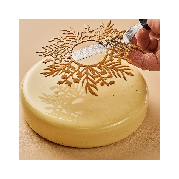 Ghirlanda Drcor si abbina perfettamente allo stampo Tor180, per imprimere direttamente su semifreddi e torte dolci o salate un decoro a forma di ghirlanda invernale perfetto per decorazioni a tema invernale e natalizio.