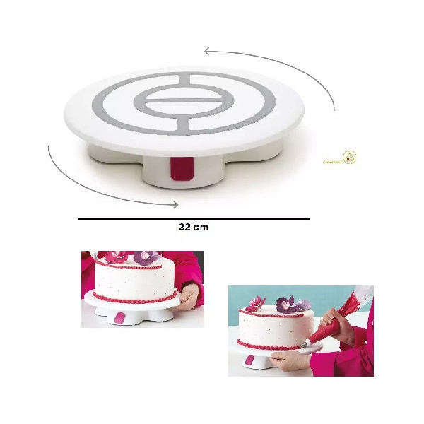 Piatto girevole decora torte, usalo come alzatina e piatto da portata da 32 cm. Grazie ai dettagli in gomma, la base bordata ed il tasto di blocco sono agevoli gli spostamenti delle tue creazioni.