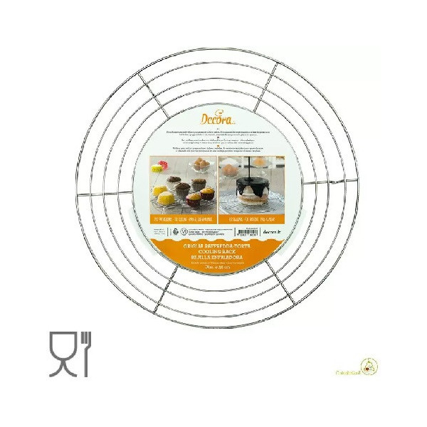 Griglia raffredda torte e di colaggio tonda in acciaio cromato diametro 32 cm. Usala per raffreddare, sfornati e preparazioni sia dolci che salate e per recuperare la glassa in eccesso.
