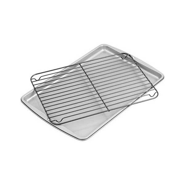 Griglia raffredda torte e di colaggio rettangolare antiaderente con teglia raccoglitore in acciaio argento da Wilton. Griglia antiaderente per cuocere scolare e raffreddare candy melts e cioccolato, per dolci e torte con comodo raccoglitore da Wilton