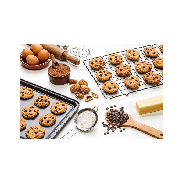 Griglia raffredda torte e di colaggio rettangolare antiaderente con teglia raccoglitore in acciaio argento da Wilton. Griglia antiaderente per cuocere scolare e raffreddare candy melts e cioccolato, per dolci e torte con comodo raccoglitore da Wilton