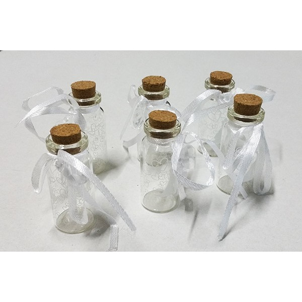 Set da 6 barattolini in vetro con tappo in sughero con serigrafia a tema matrimonio