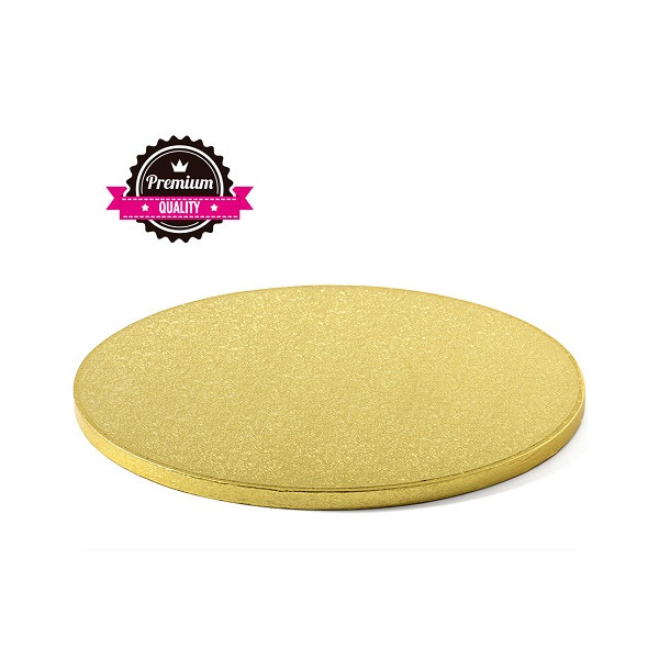 Disco tondo ideale base color oro in cartoncino Resistente e riutilizzabile, è perfetto per presentare e trasportare le torte.