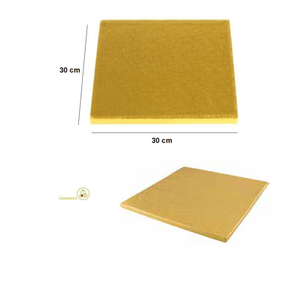 Vassoio sottotorta Quadrato dorato di lato da 25 a 45 cm, in cartoncino rigido alto 1 cm da Silikomart Vassoio sottotorta Quadrato dorato di lato 30 cm ed alto 1 cm da Silikomart Vassoio sottotorta Quadrato dorato di lato da 20 a 45 cm ed alto 1 cm da Silikomart