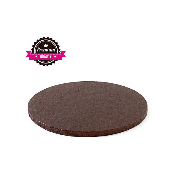 Sotto torta tondo marrone da ø25 a ø35 cm altezza 1,2 cm da Decora premium quality: vassoio tondo marrone, cakeboard marrone, in pasta di cellulosa rivestito in alluminio marrone ed imbustati singolarmente.