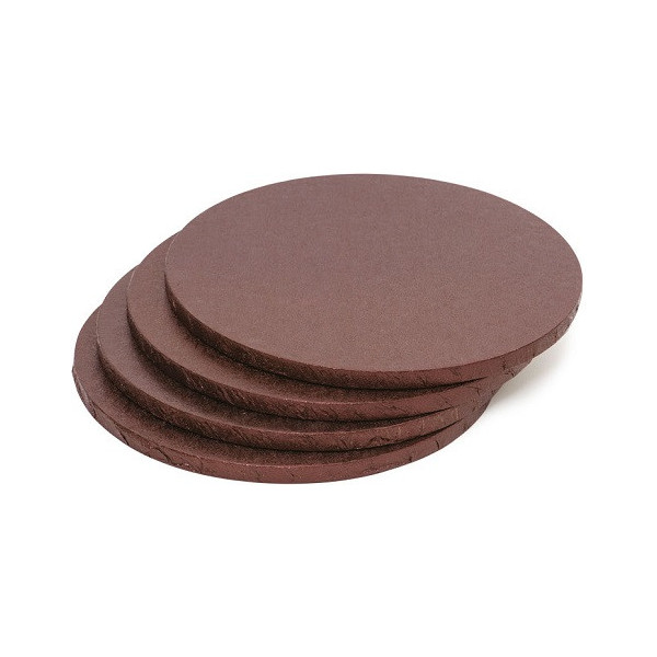 Sotto torta tondo marrone da ø25 a ø35 cm altezza 1,2 cm da Decora premium quality: vassoio tondo marrone, cakeboard marrone, in pasta di cellulosa rivestito in alluminio marrone ed imbustati singolarmente (linea premium quality Decora).