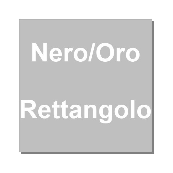 Piatto rettangolare con due superfici laminate ed accoppiate oro e nero, in cartone sottile e rigido, con entrambe le facce ricoperte di una pellicola in PET impermeabile, incartato singolarmente.