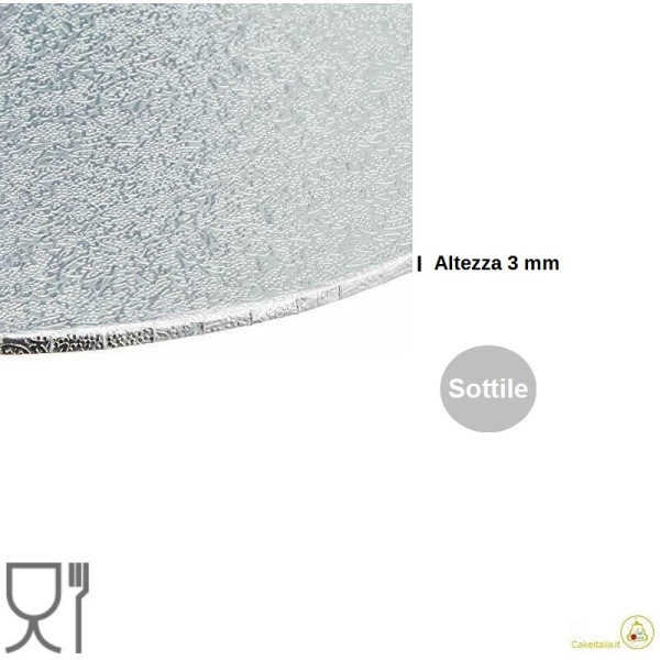 Disco Sottotorta Sottile Argento Decora – Spessore 0,3 cm, Doppia Faccia, Formati Ø16–36 cm