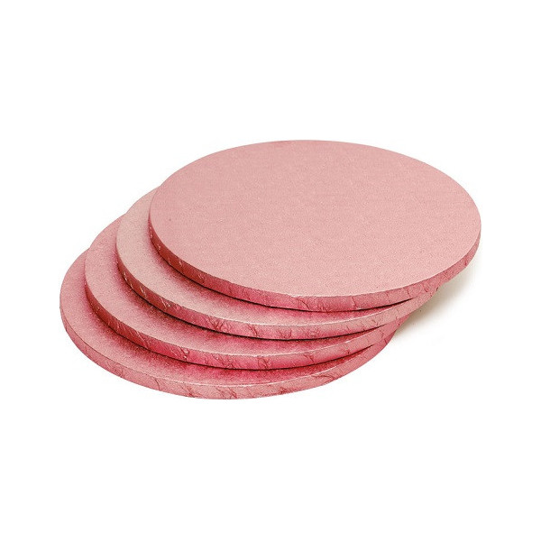 Sottotorta Rigido Tondo in pasta di cellulosa rivestita con alluminio colorato rosa gold o rosa antico per alimenti ed imbustati singolarmente.