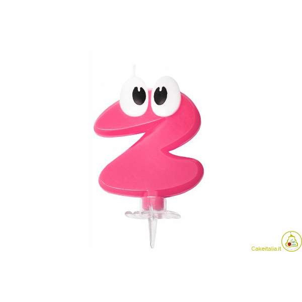Candela EYES Rosa n 2, candela per torta di compleanno alta 7 cm
