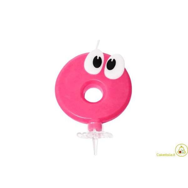 Candela EYES Rosa n 0, candela per torta di compleanno alta 7 cm